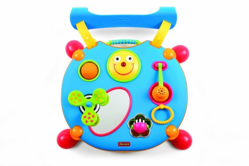Keep your little discoverer stimulated, entertained and amused from infancy into toddlerhood with the Tiny Love Developlay Activity Center. Features a double-sided design in vibrant, eye-catching colors with 20 exciting developmental activities to explore. Encourages Baby to play on her tummy, helping to strengthen neck and shoulder muscles needed for developing head-lifting skills. Can be used on the floor or in cribs and playpens. The Developlay also turns into an activity table for toddlers. Includes straps for adjusting height and ring on frame for attaching other Tiny Love toys. Side 1 is for ages 3 mos. and up; side 2 is for ages 9 mos. and up. Imported. Trial batteries included; must purchase regular batteries. 15Hx13-1/2Wx4D".